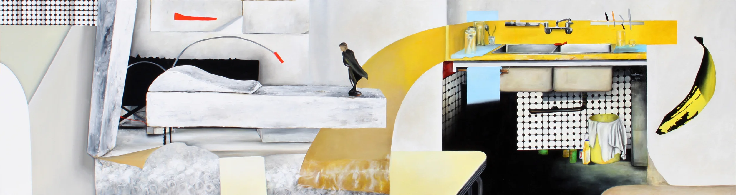 Making these paintings, I was surprised by the seemingly endless ways heterotopic spaces can be played out through their narratives. But as quickly as the paper trail led me to Foucault, Foucault brings me right back into the studio, into every studio, into the heterotopia that is the physical studio. - Fiona Ackerman