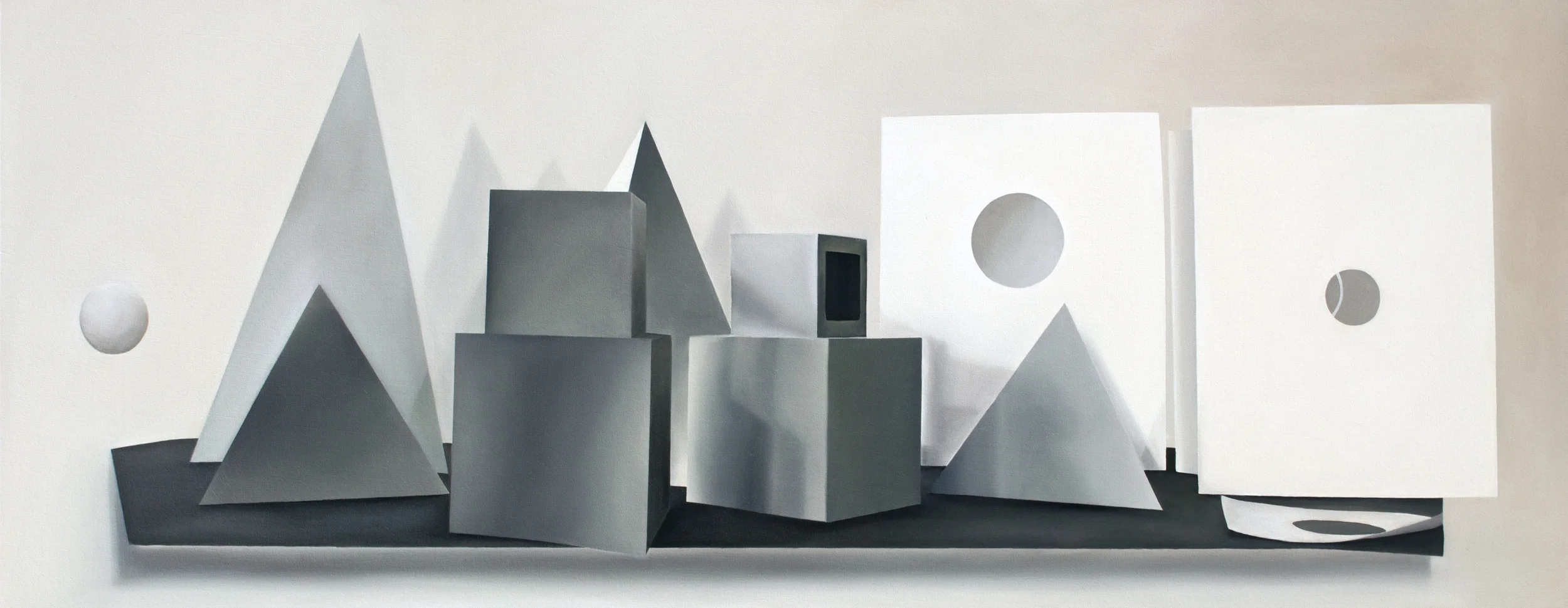 The Geometric District (from Jessica Eaton studio visit) 2013, Oil on canvas, 28" x 72"