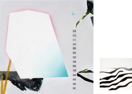 Induction. 2015, oil on canvas 20" x 18" / Room. 2015, oil and acrylic on canvas, 40" x 20"