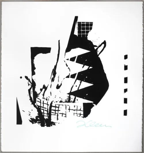 In Night Driving, a red angular form permeates the large white square just right of centre, overlapped by two looped ochre lines. References to Peace Like a River and earlier paintings can be found in the background and foreground – black lines and gestural brushstrokes. This 40”x40” painting, is the exhibition’s namesake. Creating this painting around the halfway point, Night Driving embodies visual references to earlier paintings capturing the flow and acceleration of creativity that Ackerman speaks of in relation to Chinese philosopher Zhang Zhou’s butterfly dream.